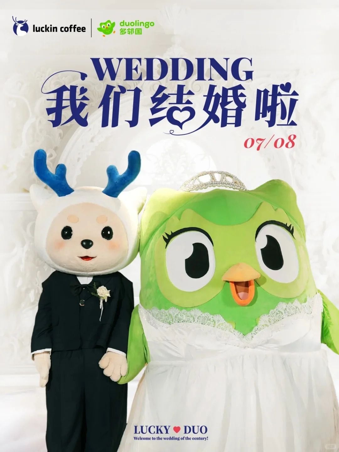 For couples, this year’s Halloween costume choice might be an easy one. After all, the most high-profile duo is none other than Duolingo’s mascot Duo and Luckin Coffee’s Lucky. The two lovebirds—or, a “lovebird” and a “lovedeer,” to be more exact—officially tied the knot in July, announcing it to the public in a three-episode micro-drama (with Chinese and English subtitles because, you know, international marriage) on their official social media accounts.